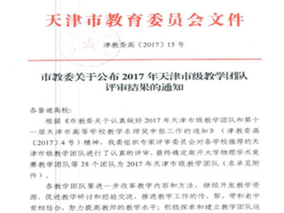 天津市教育委员会于近日正式公布了2017年获得天津市级教学团队称号的单位。津沽推拿凭借其科学的教学体系和强劲的教学实力突出重围,获得2017年中医类别中唯一的天津市级教学团队荣誉称号!
