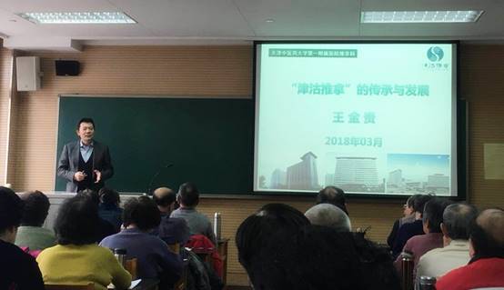 2018年3月7日,天津市老年大学正式开课。天津市名中医王金贵教授作为开班第一讲的客座教授,为广大“学生们”系统讲解了津沽推拿的起源与发展。