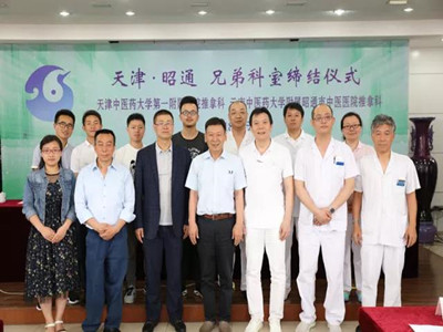 2018年6月9日,天津中医药大学第一附属医院推拿科与云南省昭通市中医医院推拿科“兄弟科室”缔结仪式在天津举行。